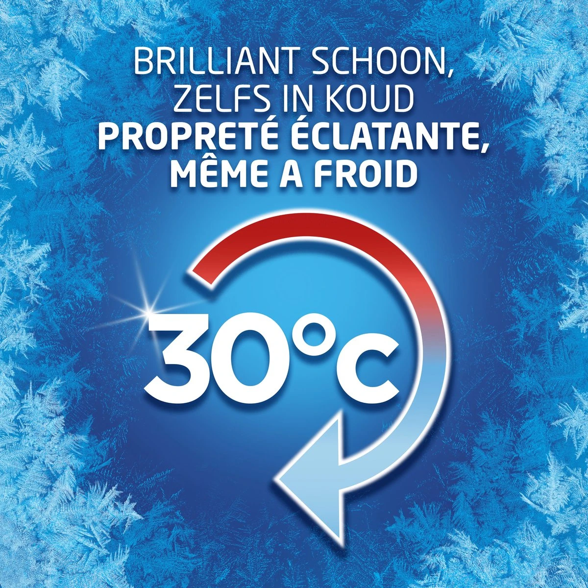 *Bespaarde energiekosten bij het wassen op 30°C vs 60°C met Dash Pods 38ct, Besparing gebaseerd op gemiddelde elektriciteitsprijzen (inclusief belastingen) voor huishoudens in België, eerste semester 2022. Bron: Creg