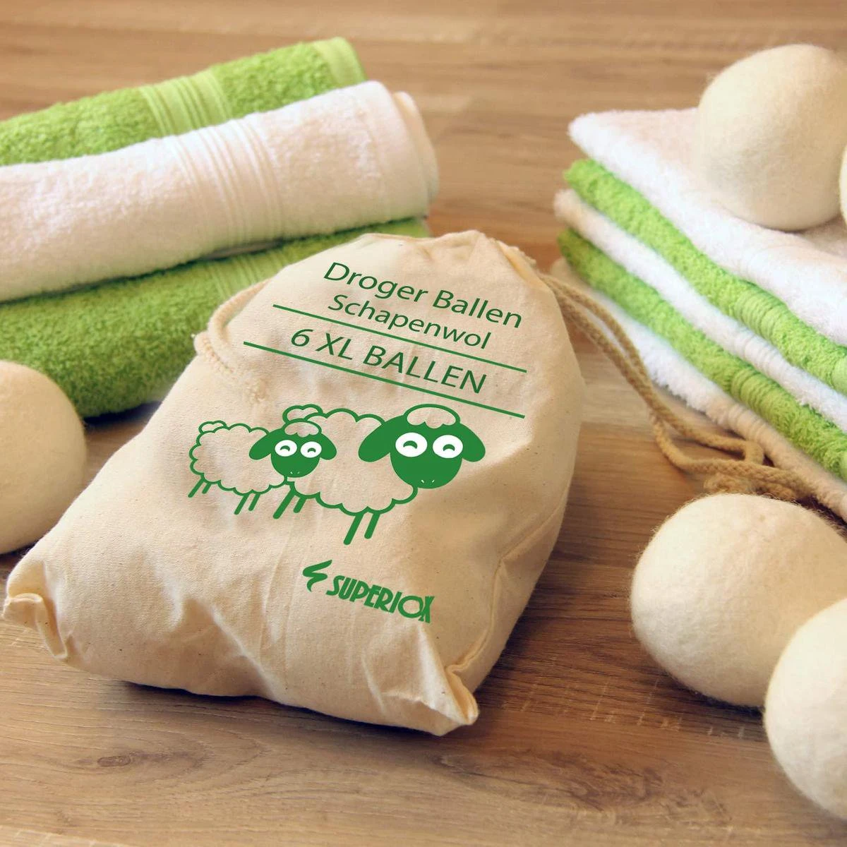 De Superiox wollen wasdroger ballen zijn handgemaakt van 100% Nieuw-Zeelandse wol. De ballen zijn natuurlijk, eco-vriendelijk, zonder chemicaliën, vrij van gifstoffen en wordt gebruikt om je wasgoed zachter te maken. De wollen wasdroger ballen van circa 6cm bevorderen de zachtheid van je was. Daarnaast zorgen ze voor een kreukvrij resultaat en bespaart U tot wel 25% op de benodigde droger tijd. Ze zijn herbruikbaar en gaan wel tot 1000 wasrondes mee.