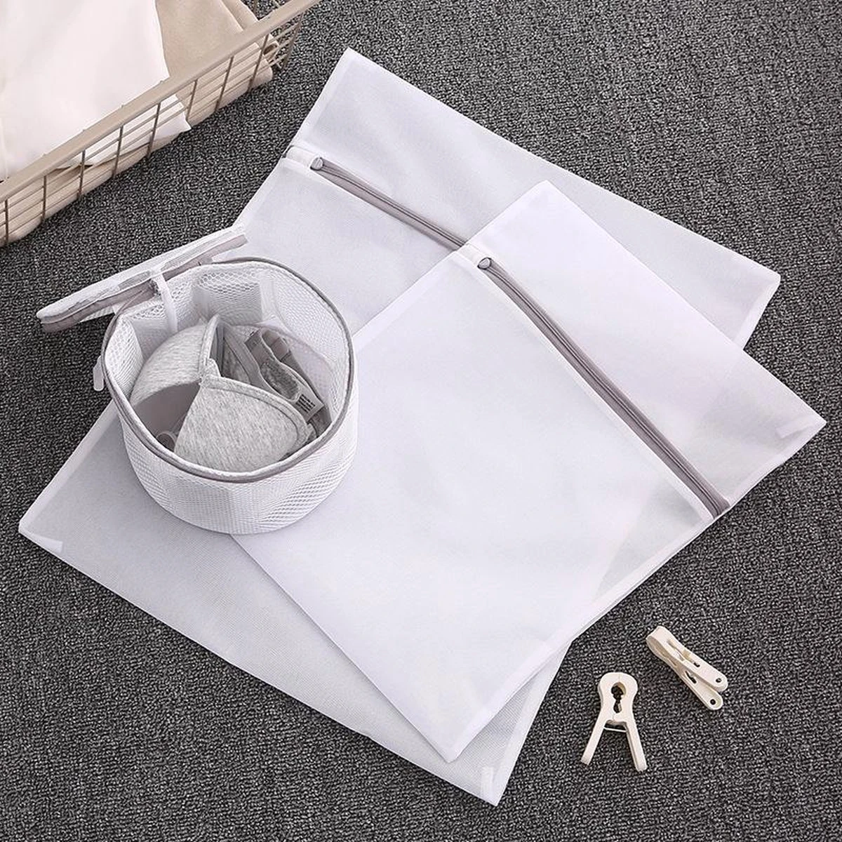 Merkloos Waszak 4 Delig – 1x Groot (50×60 Cm) – 1x Middel ( 40x50cm) – 1x Normaal (30x40cm) – 1x BH (17x15cm)