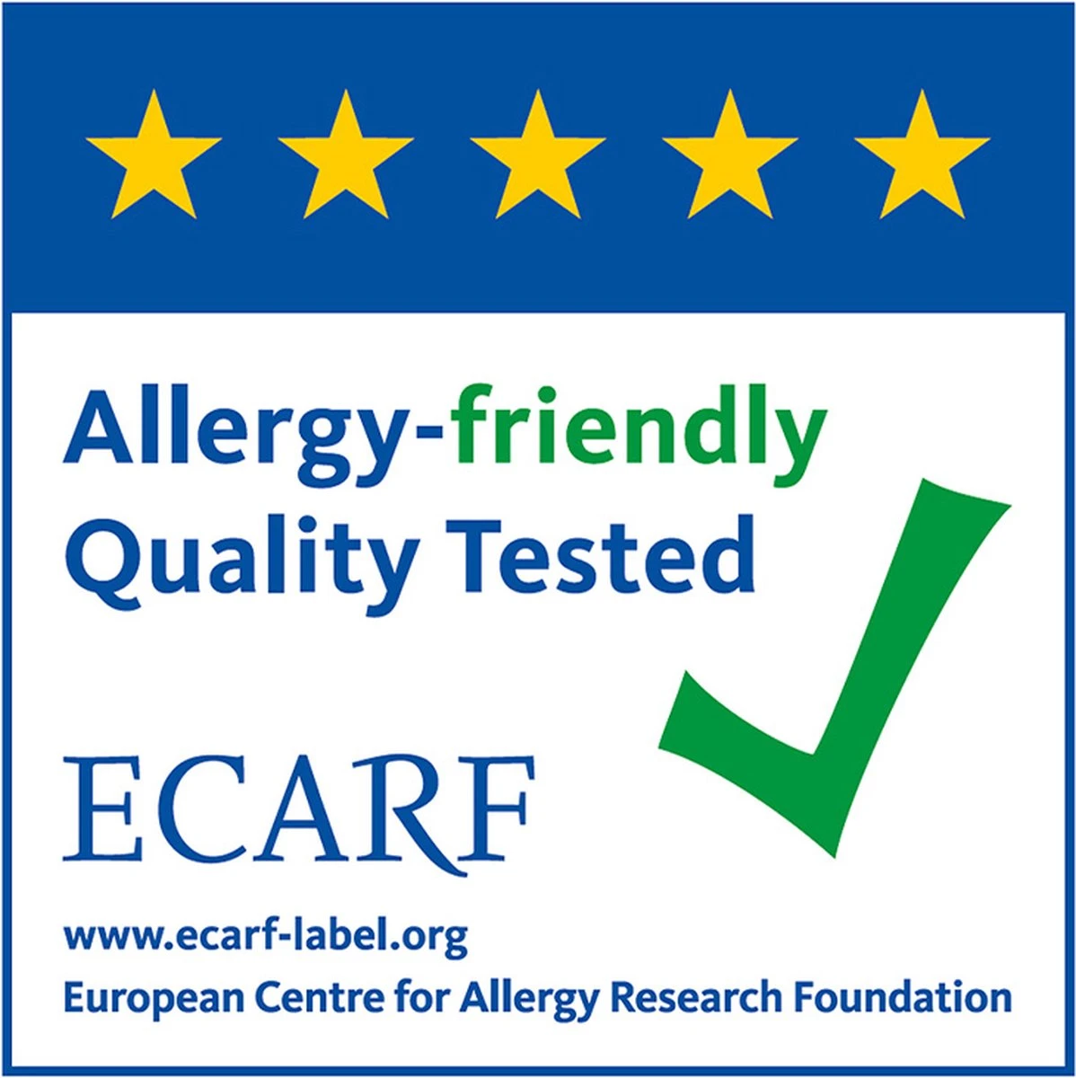 - Bevestigd als allergie-vriendelijk door ECARF, het instituut wat certificaten toekent aan producten die consumenten met allergiën ondersteunen in hun allerdaagse activiteiten.