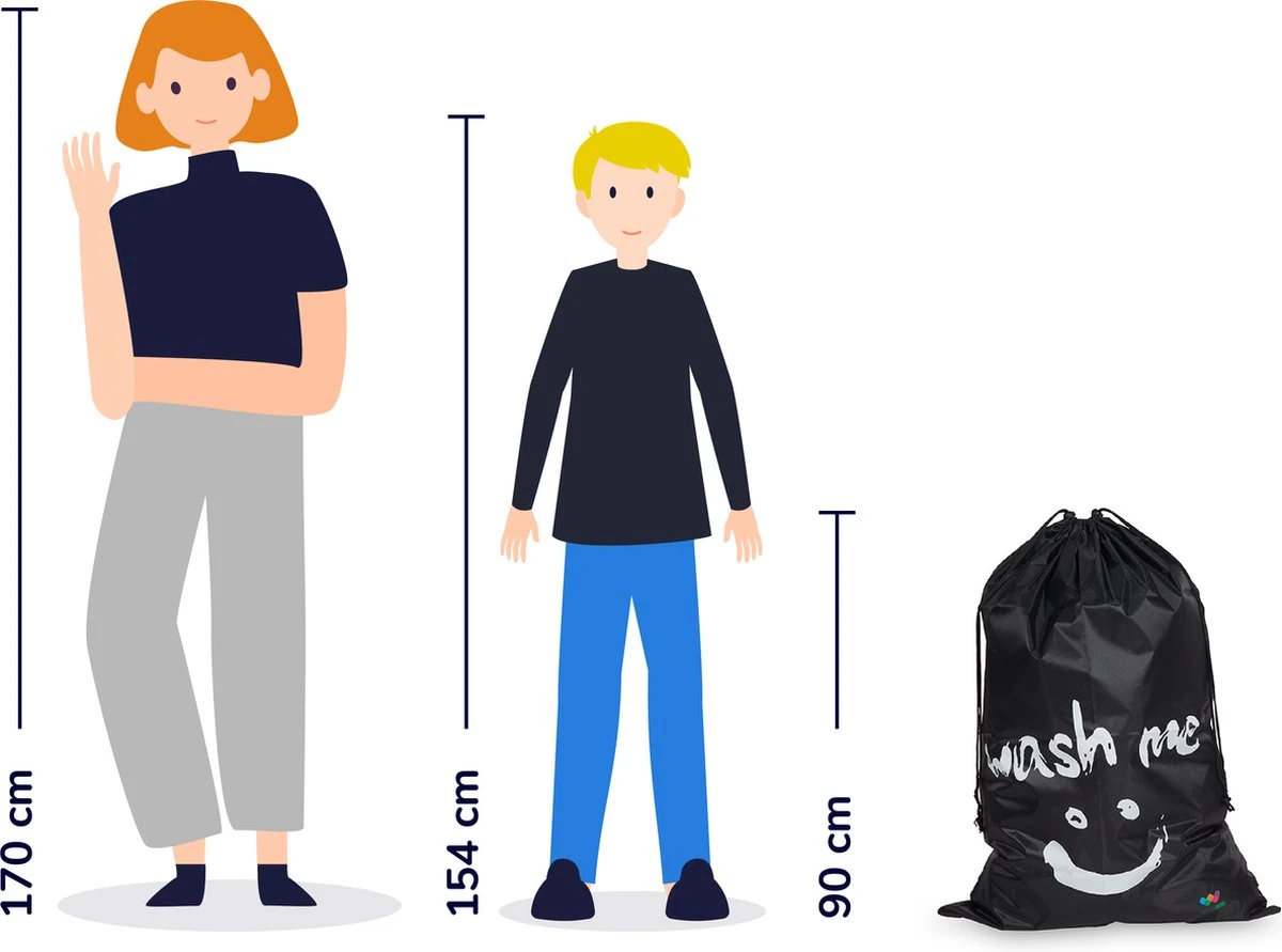 Wonair – Grote Waszak – Laundry Bag – Wash Me – 60x90cm – Zwart – Met Trekkoord
